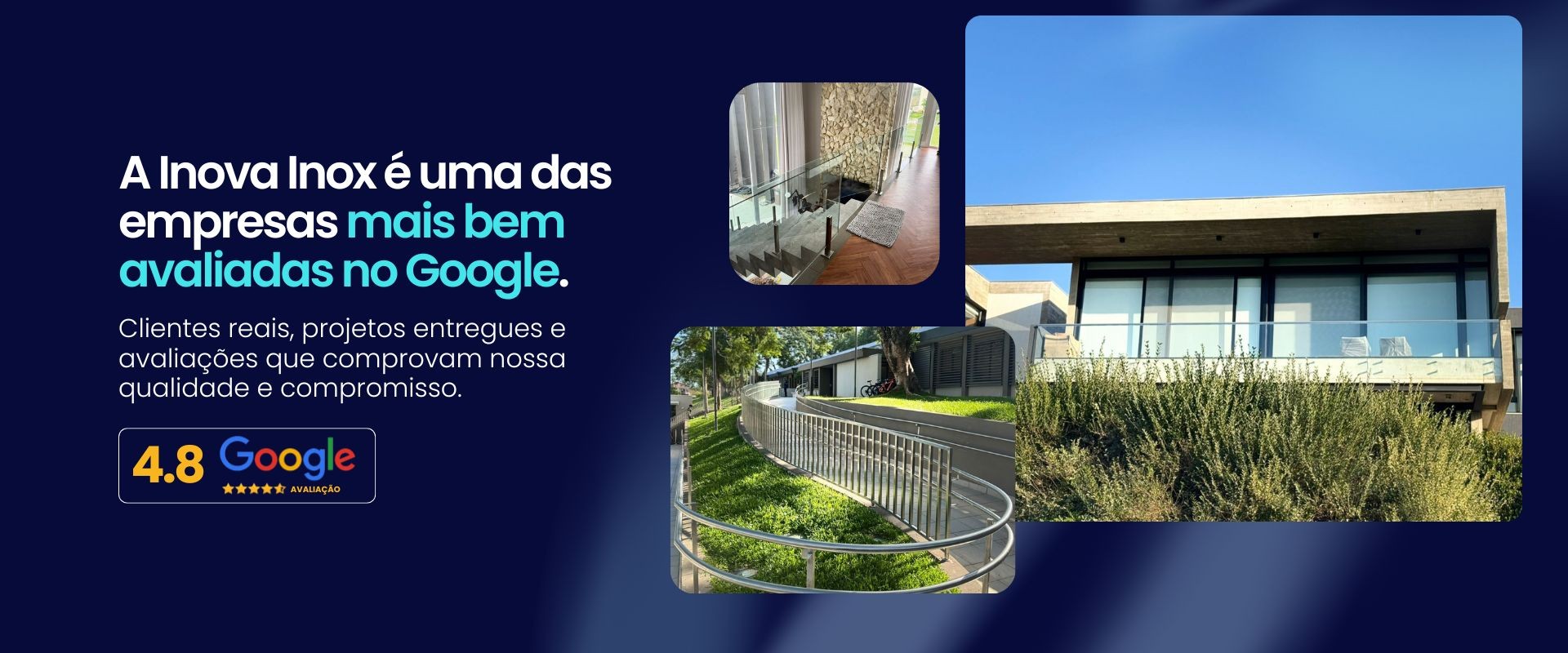 a Inova Inox, somos especializados em criar soluções em aço inox que unem design, resistência e funcionalidade. Com anos de experiência no mercado, oferecemos corrimãos e guarda-corpos de alta qualidade, feitos sob medida para atender às necessidades de cada cliente. Nossa missão é transformar ambientes, garantindo segurança, beleza e durabilidade. Seja para sua casa ou empresa, nossa equipe está preparada para auxiliar na escolha das melhores soluções em aço inox, sempre com um atendimento personalizado e atencioso.